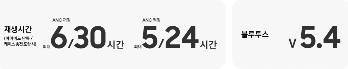 갤럭시 버즈3 시리즈에는 '액티브 노이즈 캔슬링' 기능이 탑재되어 있어, 사용자들은 더 몰입감 있는 오디오 경험을 즐길 수 있습니다. 그뿐만 아니라 360오디오 기능도 지원하여, 영화나 음악을 보다 생생하게 경험할 수 있게 해줍니다. 배터리 용량도 인상적인데, 케이스의 배터리는 515mAh로 최대 6시간까지 음악을 재생할 수 있는 뛰어난 지속성을 자랑합니다.