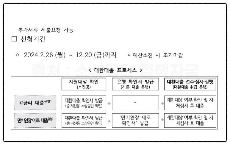 - 마지막으로 신청 기준 3개월 이내에 만기 도래 예정이나 연장이 어려워야 합니다.