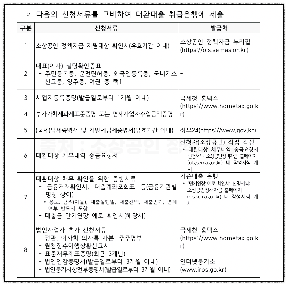 안녕하세요, 오늘은 소상공인을 위한 정책자금 중 하나인 대환대출 프로그램에 대해 신청 방법, 자격 요건, 필요 서류 등을 살펴보는 시간을 갖도록 하겠습니다.