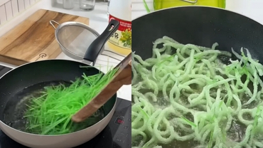 - 전분 치설을 기름에 튀겨 먹는 영상들이 SNS와 같은 소셜 미디어에서 확산되고 있습니다.