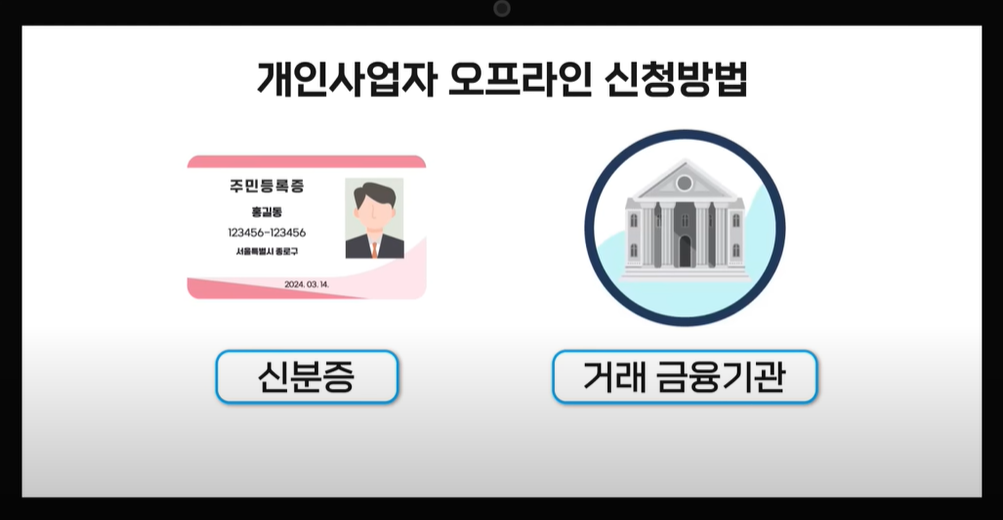 ○ 개인사업자 신청방법 : 신분증 지참해서 거래검융기관 방문