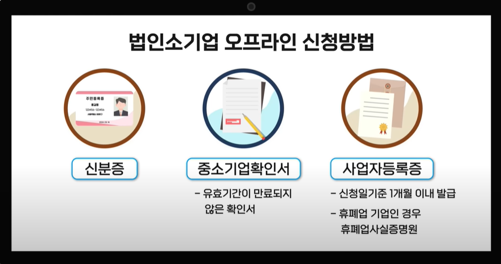 ○ 법인소기업 신청방법 : 신분증, 중소기업확인서, 사업자등록증 지참해서 거래검융기관 방문