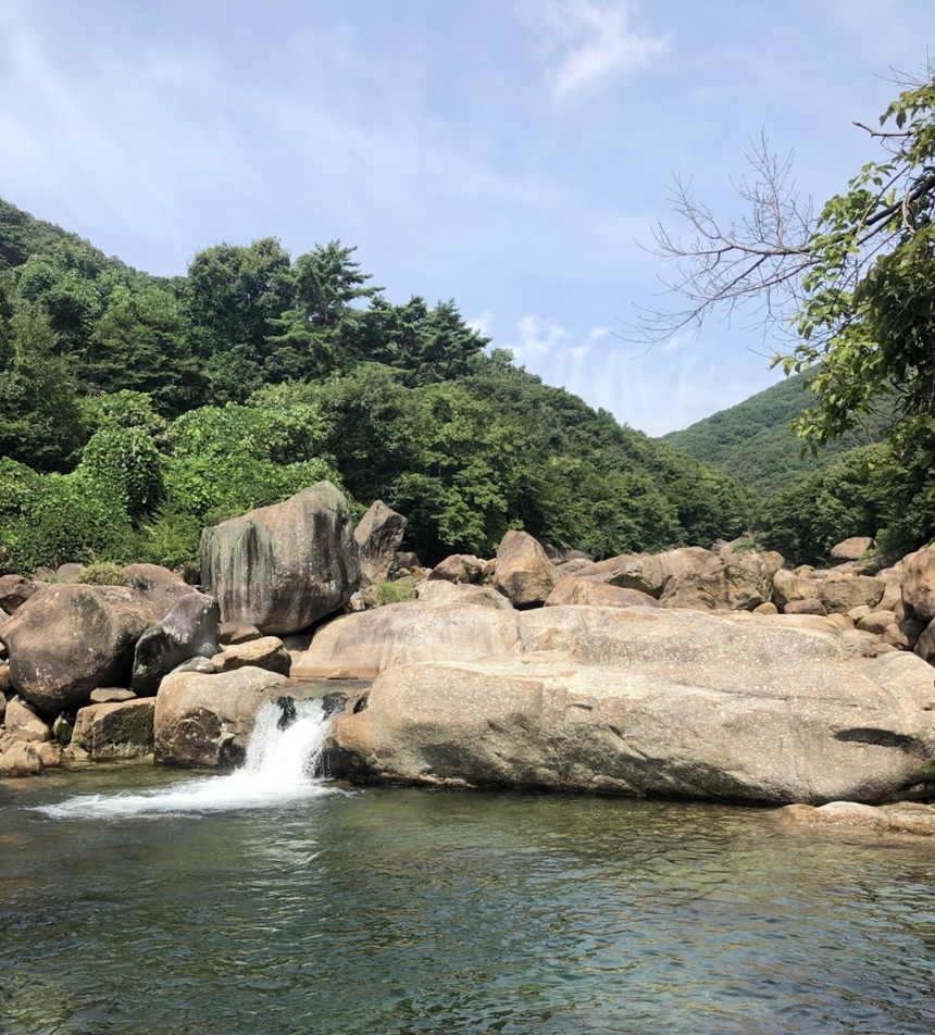 계곡 주변의 울창한 숲과 산이 어우러져 그림 같은 풍경을 제공하여 힐링을 위한 최적의 장소입니다.