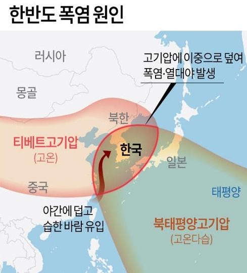 이는 강력한 북태평양 고기압의 영향으로 볼 수 있죠. 이로 인해 일본뿐만 아니라 한반도에도 영향을 미치는 폭염을 유지하는 원인 중 하나로 작용하고 있어요.
